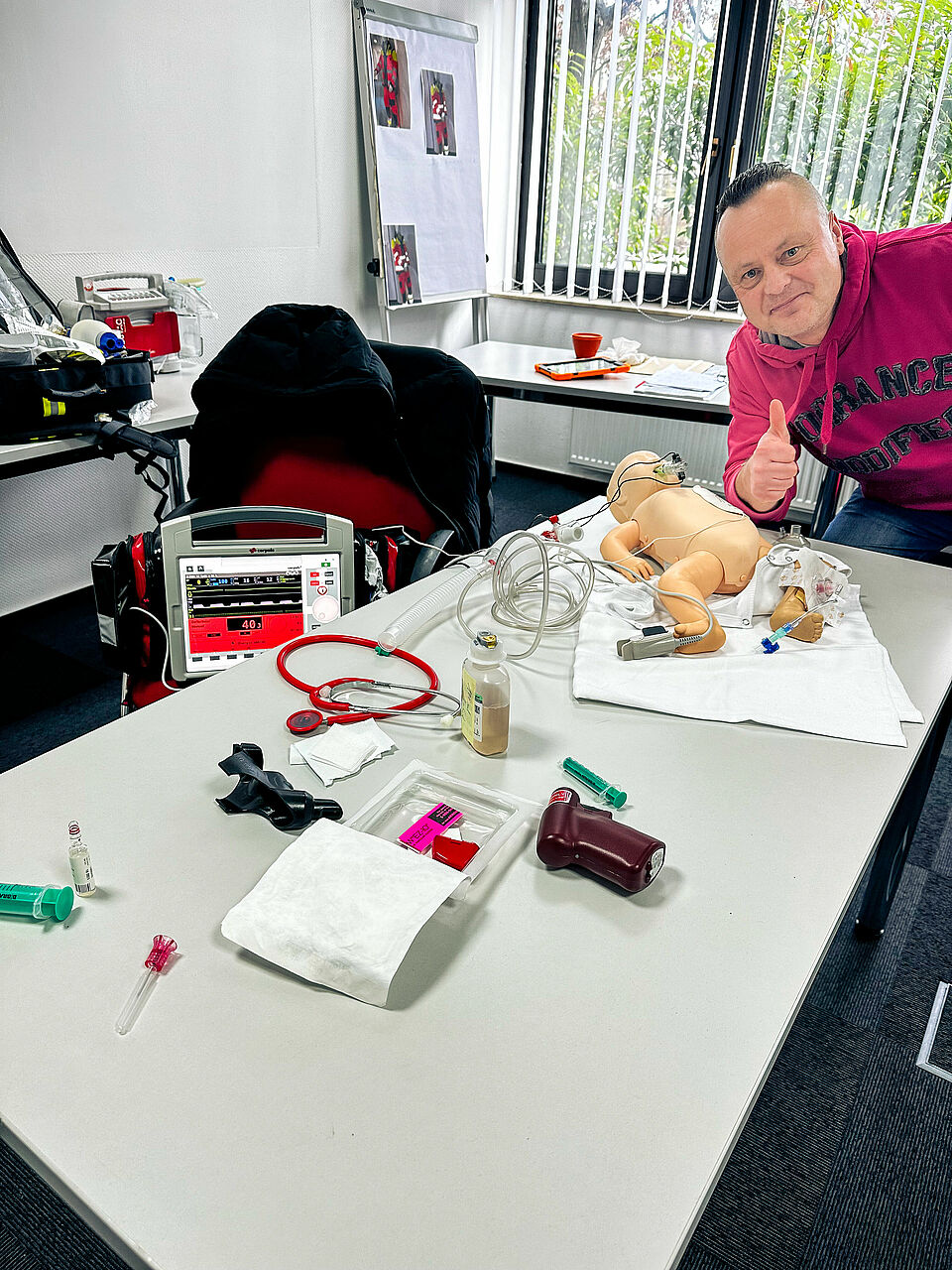 Im Rahmen des PALS-Trainings wird den Kolleginnen und Kollegen die Möglichkeit gegeben, in kleinen Dreiergruppen (Notarzt / Notfallsanitäter / Rettungssanitäter) die Kenntnisse und Fähigkeiten der Reanimation von Kindern / Säuglingen und Neugeborenen aufzufrischen und nochmal intensiv in einem zweistündigen Training zu üben.