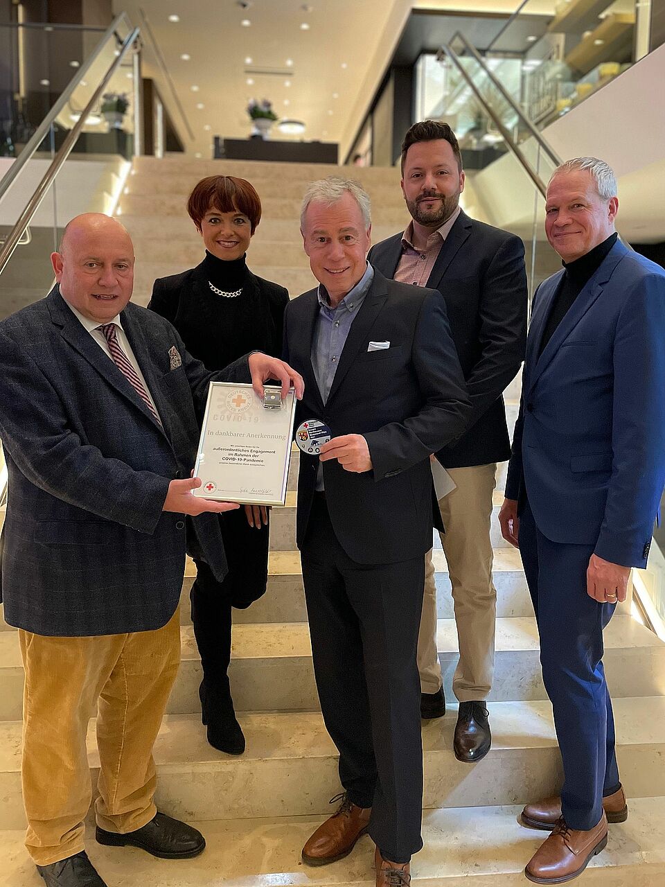 „Bereits in der ersten Woche nach der Flut hatten wir in Ahrweiler gut funktionierende Strukturen geschaffen und konnten ein deutliches Zeichen der Hoffnung senden“ so Tom Schilling der heute, stellvertretend für viele engagierte Menschen, die silberne Ehrennadel des Deutschen Roten Kreuzes durch den Präsidenten des DRK Kreisverbands Koblenz Leo Biewer verliehen bekam.
