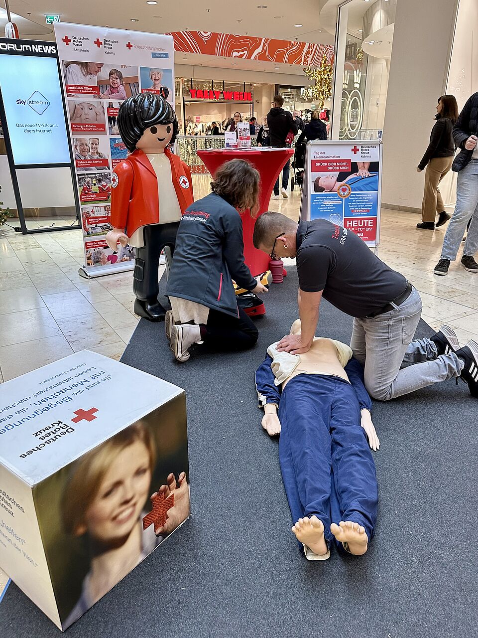 Erste-Hilfe-Ausbilder des DRK Koblenz im Erdgeschoss des Forums neben
