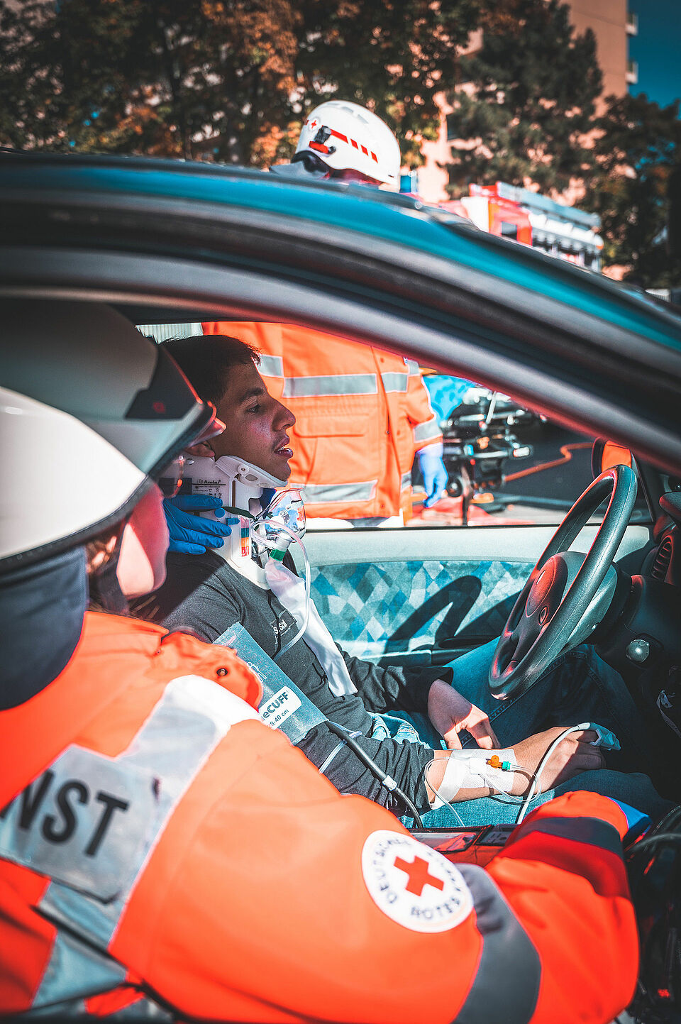 Am Nachmittag dann verfolgten die nahezu 800 Besucher:innen fasziniert die Besonderheit die Live-Vorführung einer Rettungsmaßnahme: dem Bergen und Versorgen eines in einem Fahrzeug eingeklemmten Verletzten. Für viele Besucher war es bemerkenswert, wie die Helfer:innen der einzelnen Institutionen perfekt miteinander harmonieren und innerhalb kürzester Zeit den „Verunfallten“ befreien konnten.