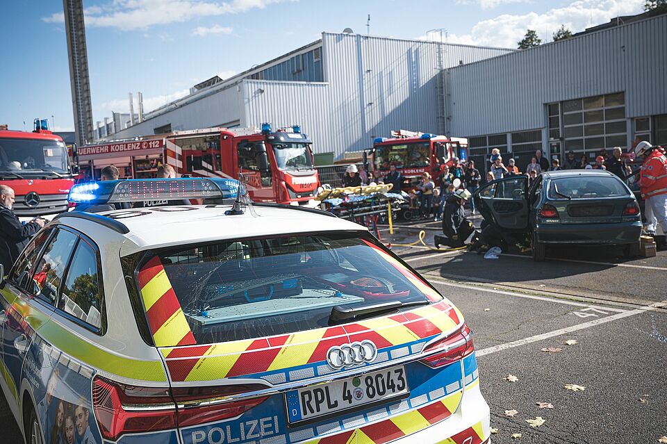 Auf Einladung von Mercedes-Benz Koblenz präsentierte sich die Koblenzer „Blaulichtfamilie“ am Samstag, 8. Oktober in ihrer ganzen Bandbreite auf dem Betriebsgelände von Mercedes-Benz. Die Freiwillige Feuerwehr Wache Nord, der DRK Rettungsdienst Rhein-Mosel-Eifel, die Polizei Koblenz, das THW Ortsverband Koblenz, das DLRG Koblenz e.V. und die Jugendfeuerwehr Bubenheim boten von 10-17 Uhr ein abwechslungsreiches Programm mit Infoständen, Ausstellungen, Schauübungen und Mitmachaktionen, um so einen möglichst authentischen Einblick in ihre wichtige Arbeit zu ermöglichen. Für die jüngsten Besucher*innen gab es bei allen Hilfsorganisationen Spiele und kleine Überraschungen.